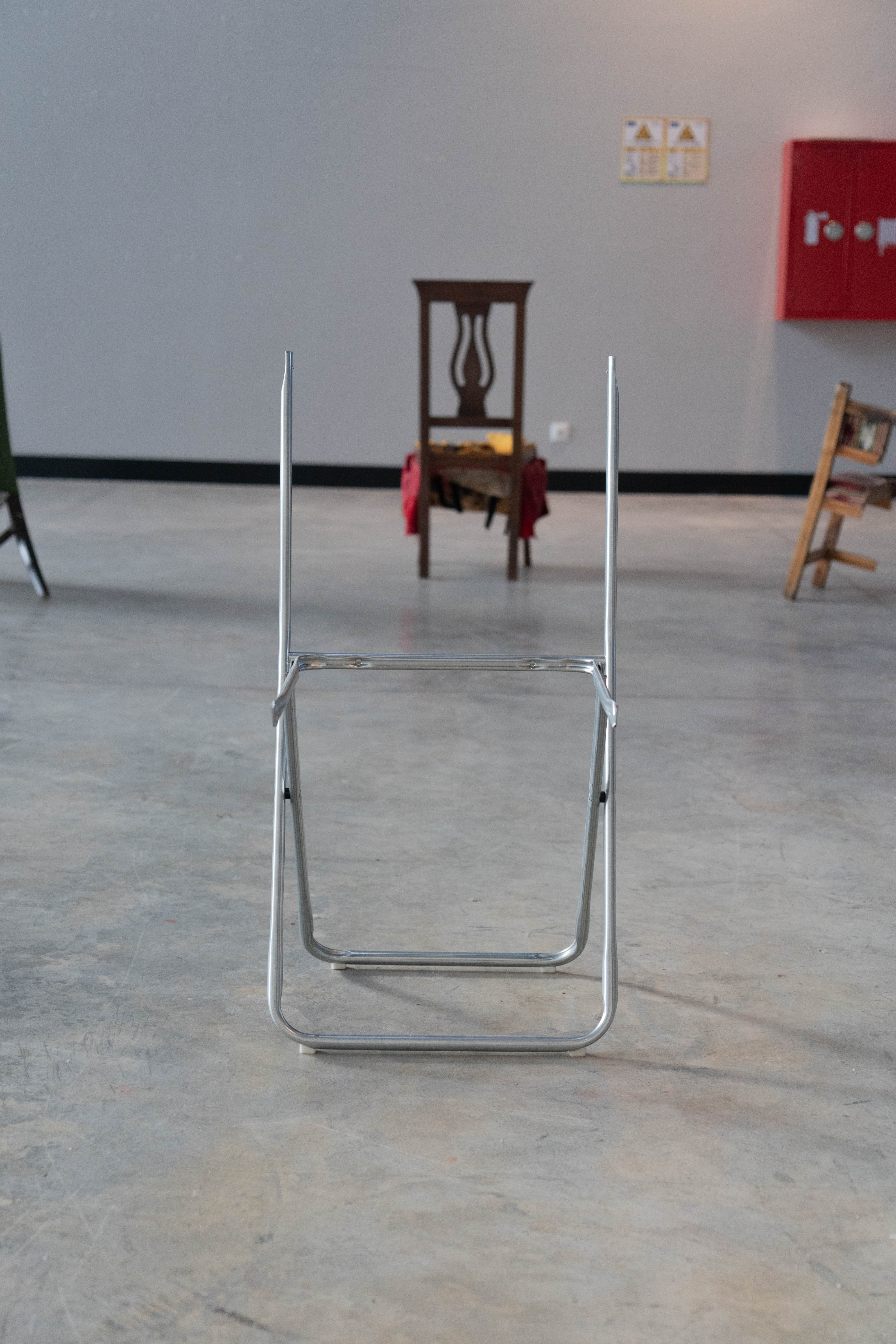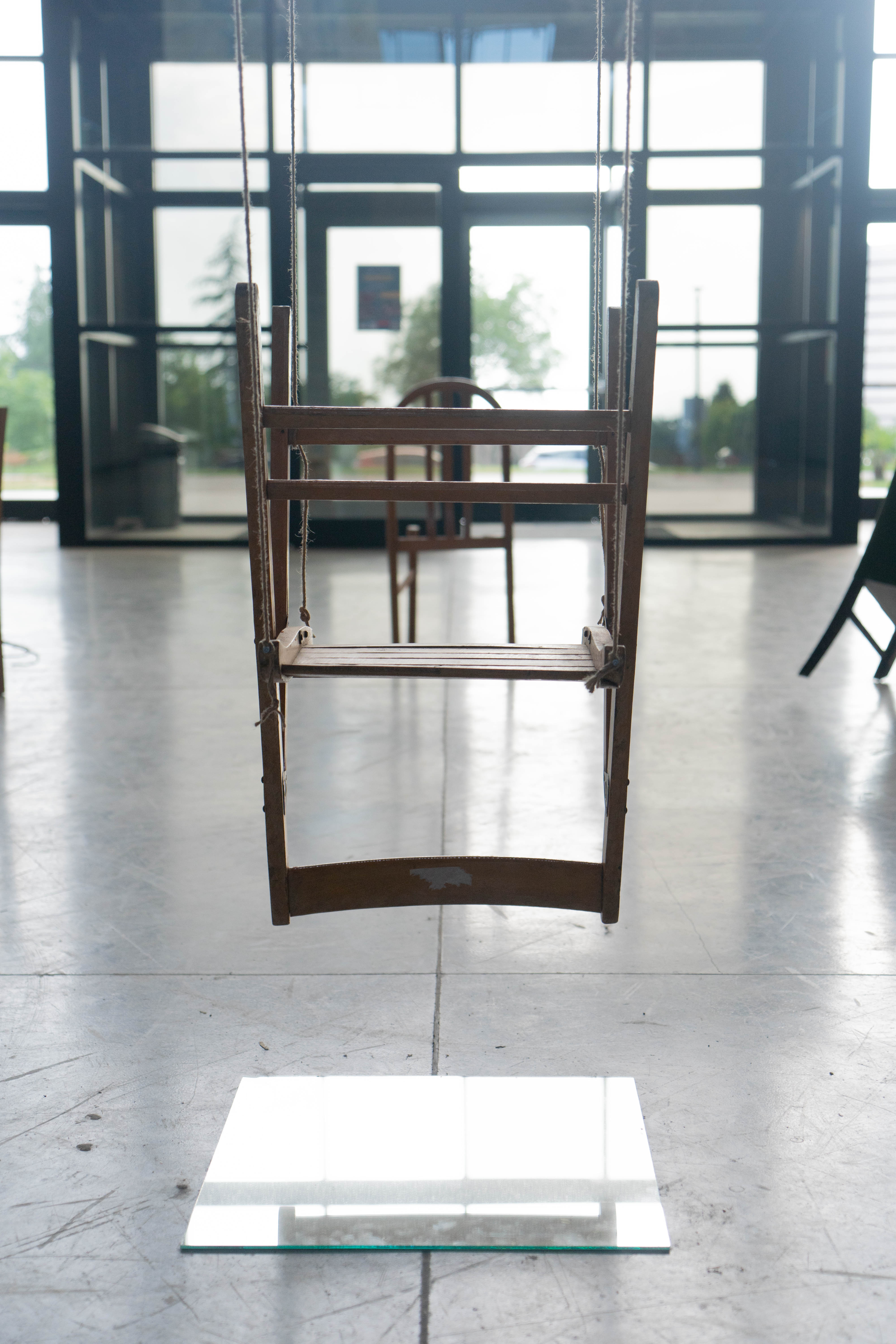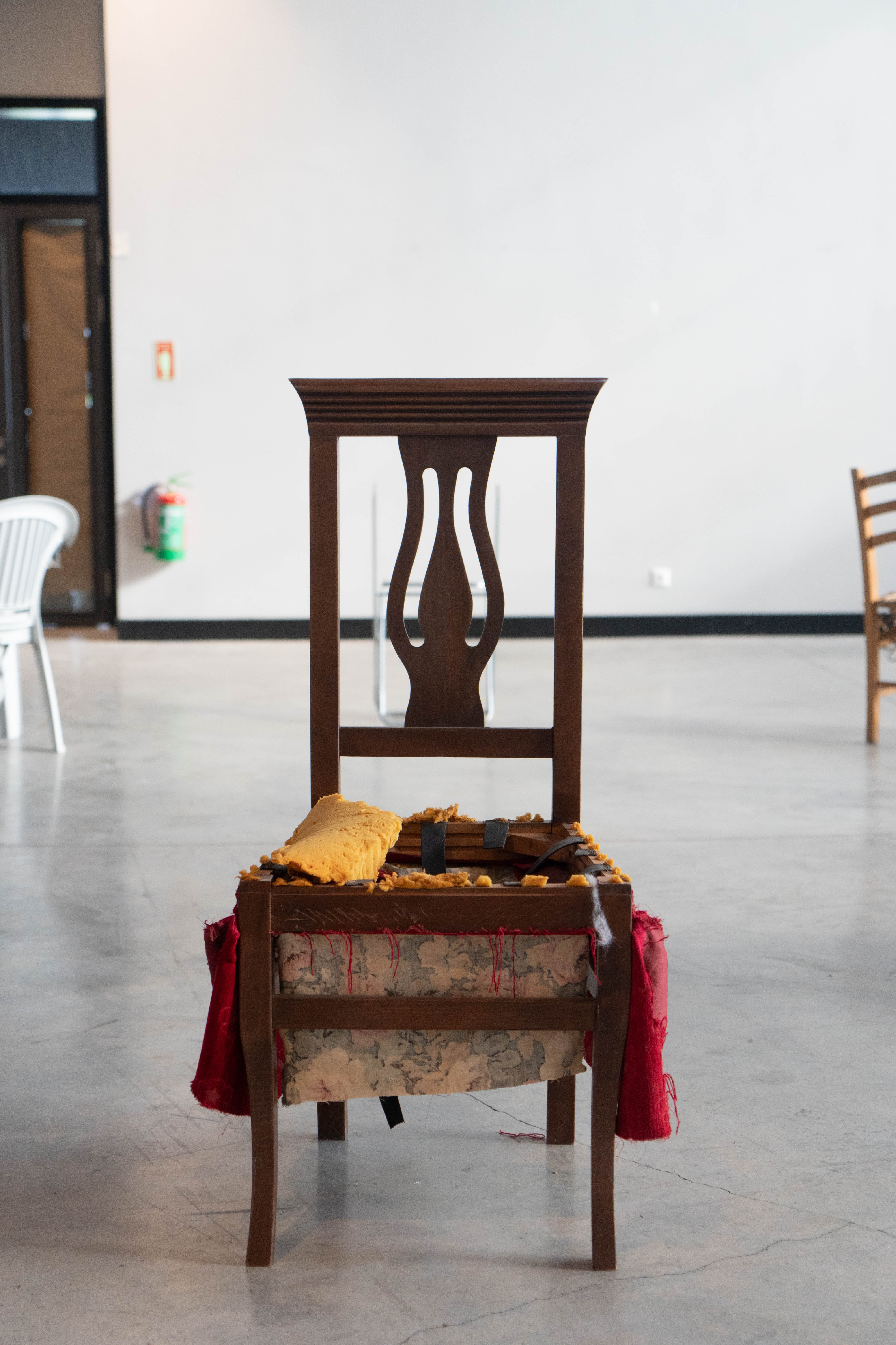 This work’s installation draws inspiration from the game “musical chairs” to address the concepts of localization, positioning, and earning a place for oneself. Chairs are subjected to operations that rob them of their functions; the process is repeated for every chair. Following this operation, the object in question now loses its old status and is brought to a new position. Humankind’s struggle to position themselves in society, a musical chairs game of one’s own, is played by the artwork’s observer.