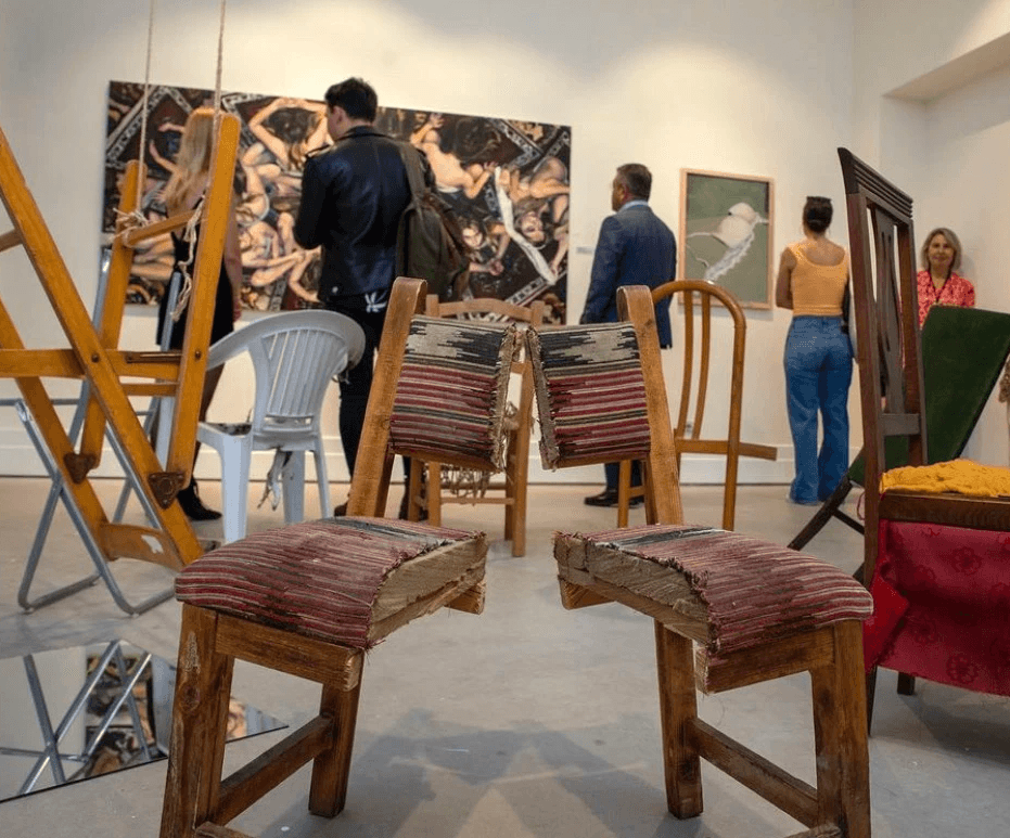 Erkman's artistic practice plays around the exploration of abstract concepts through the mediums of sculpture, installation, and photography.By using forms, colors, and interventions such as distortion and modification, the artist seeks to make them tangible. She also employs music as a driving force for her abstract and expressionist canvases.