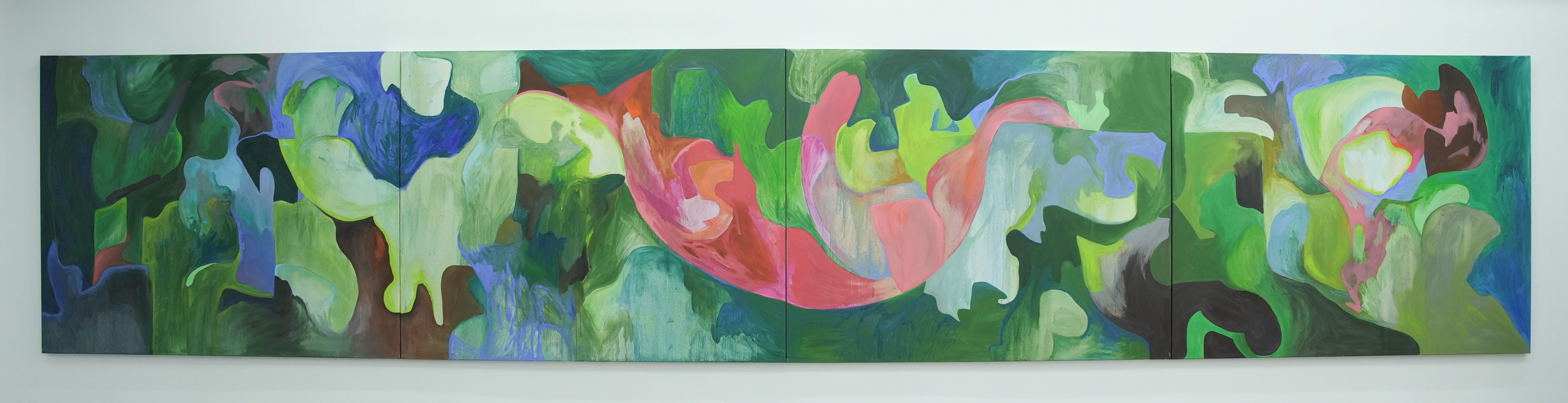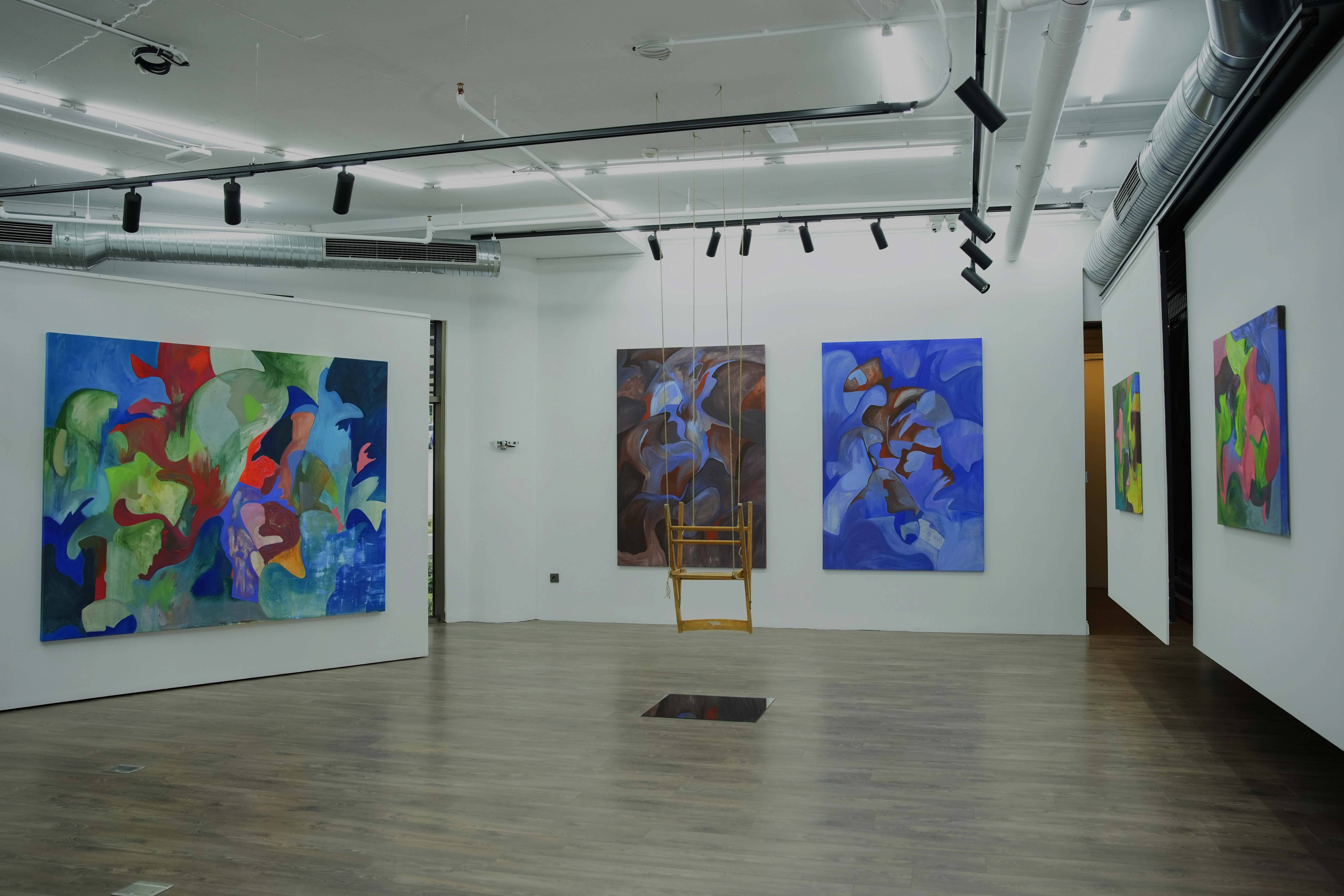 Who wouldn't want to get lost" emerges as a compelling exploration of the human psyche. This exhibition seamlessly intertwines two distinct yet interconnected narratives, revealing the dichotomy of the human experience through a captivating blend of large-scale abstract canvases and site-specific installations. At the heart of the exhibition lies a series of large-scale abstract canvases, each a vibrant tapestry of colors that are products of a process of self isolation in which the artist was pensive but to her surprise not overwhelmed by the thoughts surrounding her. It was, indeed, a process through which the artist found relief and joy. These canvases result from a contemplative approach to art creation, offering windows into human psychology and capturing the essence and complexity of mind and emotion.