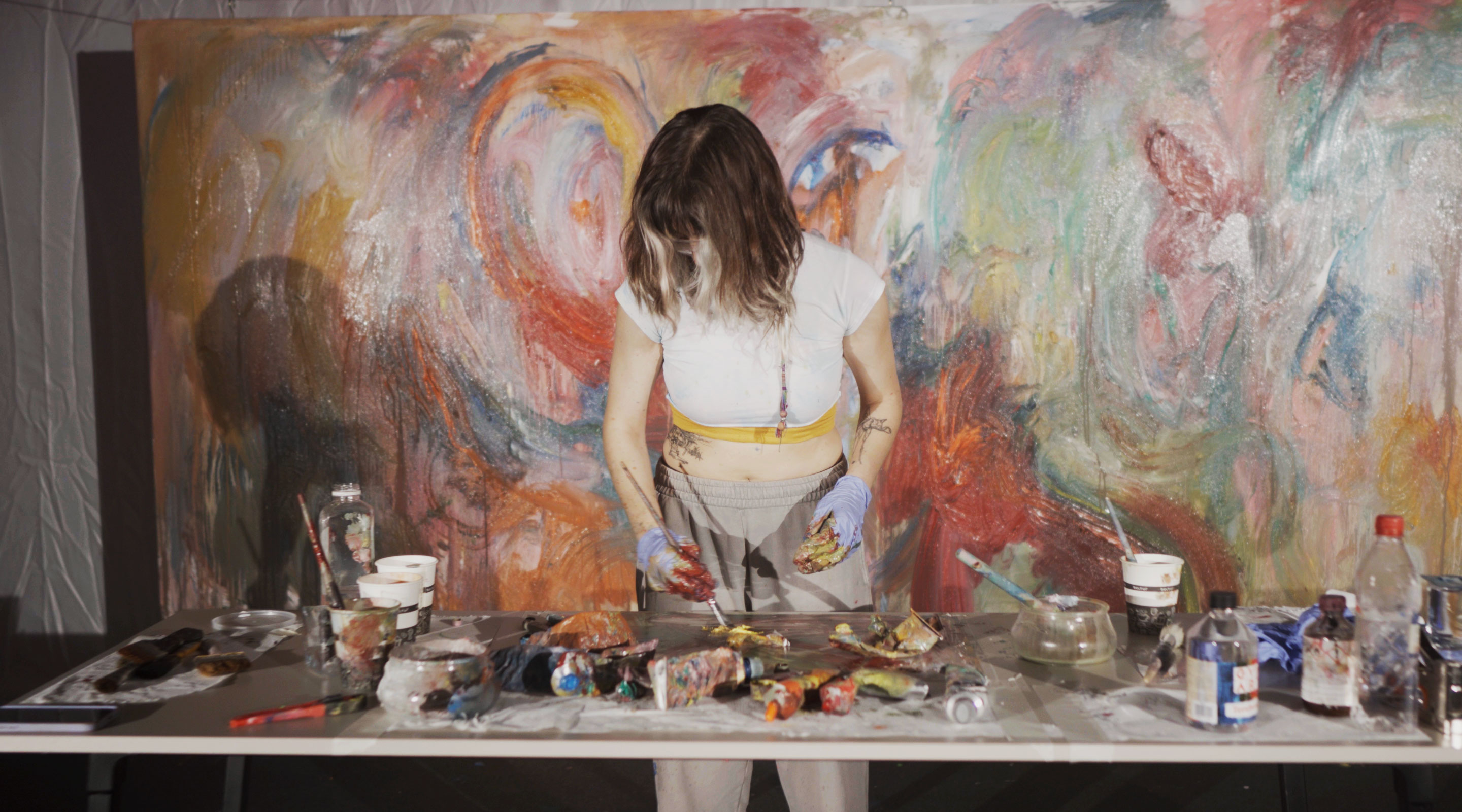 Erkman's artistic practice plays around the exploration of abstract concepts through the mediums of sculpture, installation, and photography.By using forms, colors, and interventions such as distortion and modification, the artist seeks to make them tangible. She also employs music as a driving force for her abstract and expressionist canvases.